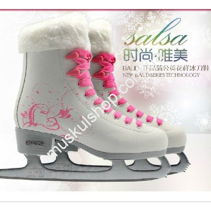 Коньки Baud пошиты из прочной, эластичной и качественной кожи. Лезвие выполнено из средне-углеродной стали, а основа коньков из серого цвета. Вес коньков не превышает 1 кг, очень маневренные, прочные и многофункциональные, широко применяются в фигурном катании, тренировках, показательных выступлениях и турнирах. Модель белого цвета, имеют короткий мех, рассчитаны на женщин. Верх данной модели коньков пошит из прочного, водонепроницаемого PVC-материала, а подошва из экологической, натуральной и эластичной кожи. Фиксируется данная модель коньков благодаря прочным шнуркам, в наличие несколько размеров, можно выбрать на заказ любой.