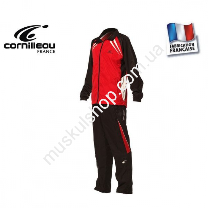 Костюм Cornilleau можно носить по отдельности, настоящая мужская модель, подходит для различных игр в помещении, так и за его пределами, используется также для ежедневной носки. Модель пошита для мастеров и любителей, которые любят легкие ткани и свободу передвижения во всем, также он элегантный, практичный. Материал дышит, активно пропускает воздух в двух направлениях, сохраняет изначальную температуру тела. Костюм подойдет не только для настольного тенниса, но и для других видов спорта. Модель костюма хорошо сохнет, хорошо поддается чистке, безупречно выводит влагу с тела спортсмена. Характерно, что костюм не издает звуков между ног и подмышек в момент движений. Костюм выполнен с прочного, надежного и эластичного полиэстера. Представлена модель в красно-черном цвете, по бокам вставки, придется по душе настоящим мастерам тенниса.