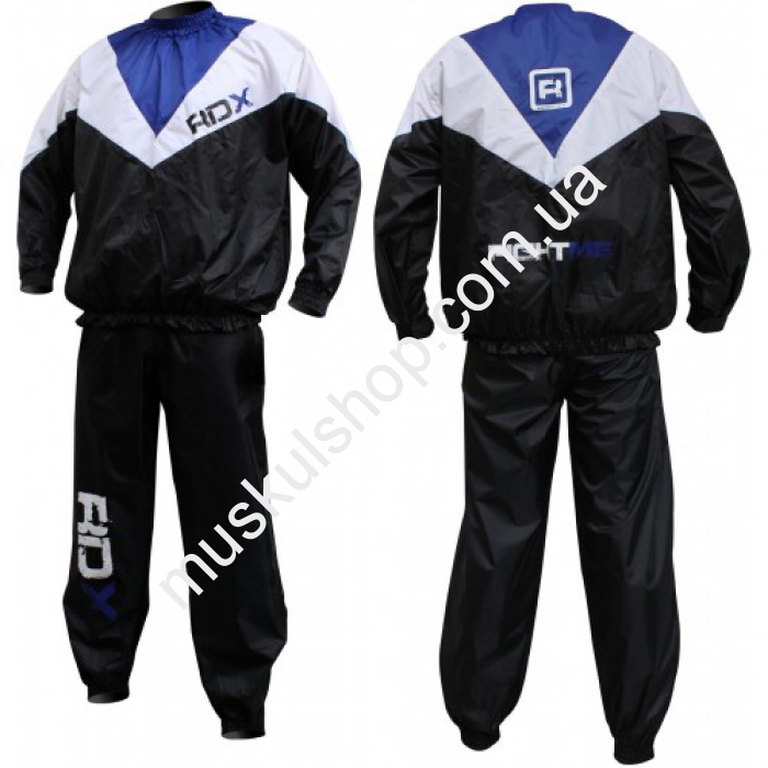 Костюм RDX для скорого похудения, более чем на 70 % увеличивает интенсивность потоотделения во время тренировок, увеличивая при этом эффективное похудение, в ходе чего мышцы обретают тонус, исчезает проявление целлюлита. Костюм представлен в синем цвете, его дизайн подойдет женщинам, мужчинам и даже подросткам, он изготовлен из нейлона, мягкого на ощупь, благодаря чему удерживается тепло. Повысить эффект сауны помогают манжеты на ноге и руке и универсальный пояс на талии спортсмена. Костюм поможет вам достичь желаемых вершин в спорте, увеличить динамику мышц. Костюм хорошо поддается стирке, легко чистится, рекомендовано простирывать при низких температурах.