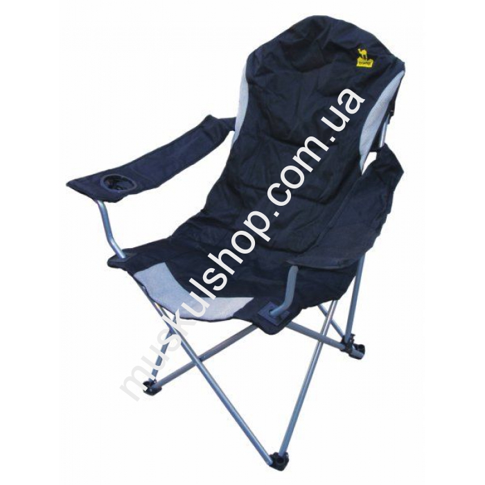 Кресло Tramp для комфортного, туристического отдыха, укомплектовано подлокотниками. Спинка кресла регулируется в 3-х направлениях, а каркас изготовлен с прочного стального сплава. Также в ручке кресла находиться подстаканник под разные потребности. Упаковано кресло в чехол прочной материи. Материал стульев сверху прочный oxford, который не промокает. Кресло легко транспортируемое, представлено в двух цветах, черном и сером. Модель раскладного типа, большой комфортности, способен выдерживать нагрузку до 90 кг, на кресло нанесен логотип фирменного бренда. Вес кресла не превышает 4 кг, который может поднять любой подросток в семье. Стульчик просто незаменим для комфортного отдыха на даче, у костра, на рыбалке или же на охоте.