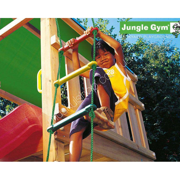 Jungle GymЛестница Jungle Gym Chimp Ladder 201_170Лестница Jungle Gym Chimp Ladder #201_170 необходимое и удобное дополнение практически к любому игровому комплексу, которое могло служить и как дополнительное средство для того, чтобы подняться на второй уровень башни, и просто как игровое приспособление. Лестница создана из высококачественного материала, который отличается своей плотностью и возможностью выдерживать большие нагрузки. Каждая лесенка отличается по цвету, который имеет приятный для глаз оттенок и делает саму лестницу более яркой и насыщенной. Лестница Джангл Джим Чимп Лэддер #201_170 легко можно закрепить при помощи специальных креплений, которые не позволяют тросу лестницы соскальзывать. Такое дополнение не портиться от воздействия холода и солнечных лучей, а также не подвержено негативному воздействию воды.