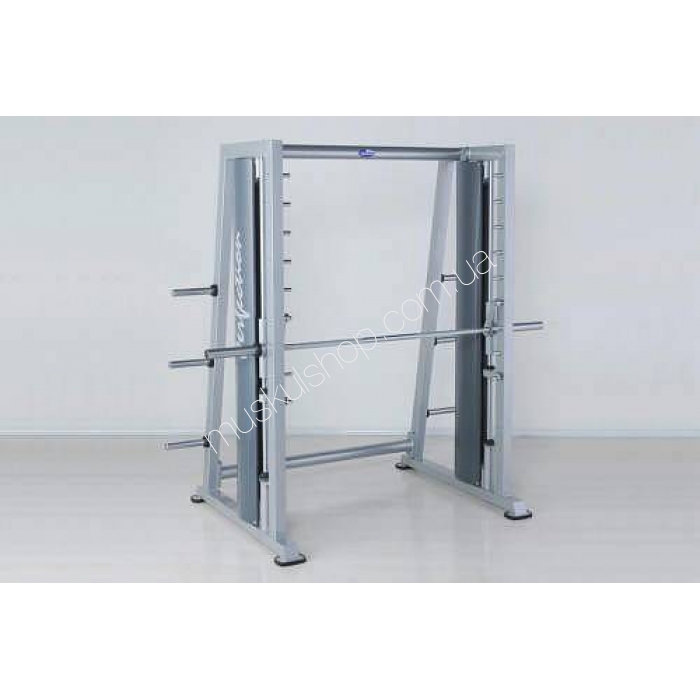 Машина Смита с противовесом Вадзаари 1315 отличается уникальной конструкцией, которая позволяет значительно расширить функционал самого аппарата. Если представленный тренажёр совместить вместе со скамьёй, то у вас будет возможность расширить комплекс выполняемых упражнений. Конструкция аппарата отличается тем, что она была создана с применением высококачественного металла, а потому является усиленной, в особенности, в местах соединений. Данное приспособление оснащается держателями для штанги, грифов и блинов, за счёт чего вы можете заниматься также и с ними.