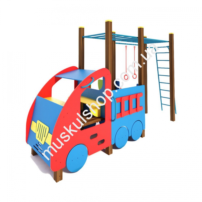 Машинка с гимнастическим комплексом TE506 укомплектована целым комплексом для гимнастики, здесь предусмотрено все необходимое рукоход, стенка для скалолазания, кольца, а наигравшись можно спуститься с горки. Комплекс позволяет не только играть, но и заниматься спортом, его общая масса составляет 405 кг, способен выдерживать 80 кг нагрузку, идеальный вариант для детишек от 2-х до 7 лет, устанавливается в помещениях, дачах и загородных комплексах, базах отдыха, детских лагерях, возле водоемов. Игровой комплекс представлен в разноцветных тонах, выполнен с прочного, качественного и натурального дерева, с добавлением стали и фанеры. Для лучшей фиксации комплекса, необходимо забетонировать основание. Материалы качественные и после нескольких годов интенсивной эксплуатации, такая детская горка не поменяет свой первоначальный облик.