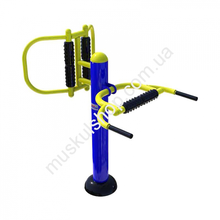 Массажер Интер Атлетика SL111 покрыт порошковой краской, которая не вызывает коррозию металла. Предназначена модель для занятия сразу двоим пользователям. Массажер развивает мышцы спины, основные группы мышц рук и суставов, улучшает обращение крови в организме. Габариты тренажера позволяют размещать его на открытой площадке, выполнен в желто-синем цвете, подходит для женщин и мужчин от 14 до 70 лет включительно.Запрещены занятия при снегопаде, дожде и сильном ветре, чтобы нивелировать возникновение травматизма. Тренажер очень удобный в эксплуатации, эффективный, безопасный, многофункциональный и надежный. Модель относят к линейке уличных тренажеров, способных развить выносливость, наполнить тело и мышцы кислородом, придать уверенности и сил. Общий вес спортивного изделия составляет 65 кг, длина 1,10 метра, а высота 1,40 метра.