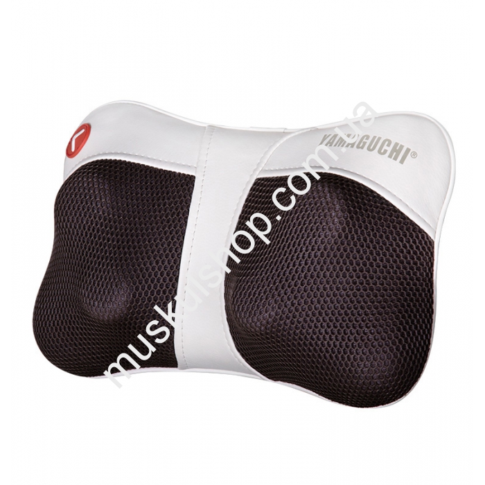 Yamaguchi Massage Pillow многофункциональная массажная подушка. Подушка массажирует плечевой отдел, шейный, голову, грудной и ягодичный отдел, а также бедра, руки, ноги и ягодицы. Мощность подушки 18 Ватт, общий вес 1,6 кг. Тип работы подушки: роликовый механизм, в работе задействовано 4 ролика. Подушка оснащена кнопкой включения и выключения массажа. Широко применяют в домашних условиях, офисе и автомобиле. Подушка полностью имитирует руки массажистов, также предусмотрена функция прогрева. Работает от электрической сети либо автомобильного прикуривателя. Применяют при улучшении кровообращения, повышении тонуса организма, снятие усталости и стрессов.