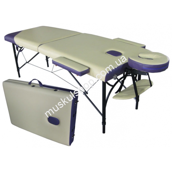 US Medica Master укомплектован: вырезом для лица, заглушкой к нему, сумкой для транспортировки, оснащен также съемными подголовниками, подлокотниками и ремнем для фиксации рук в момент интенсивного массажа. Стол способен выдержать нагрузку свыше 250 кг, двухсекционный, изготовлен из буковой основы из стальными ножками, просто идеально впишется в интерьер косметического салона или домашней комнаты. Легкий, вес не более 22 кг, слаживается взмахом руки и переносится в чемодане. Покрытие стола сделано с прочного и качественного кожезаменителя, Широко применяют при различных видах Спа-процедур. Данный стол впечатляет своей простотой, уникальностью дизайна и многофункциональностью.