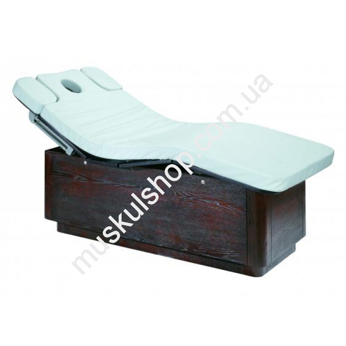 Массажный стол имеет автоматическое управление. Основа стола изготовлена из дерева, поэтому он устойчив и надежен, предотвращает любое пошатывание взад вперед. Стол имеет съемные подлокотники, которые обладают правильной анатомической формой. А также на поверхности стола есть удобный вырез для лица, который при необходимости закрывается валиком.