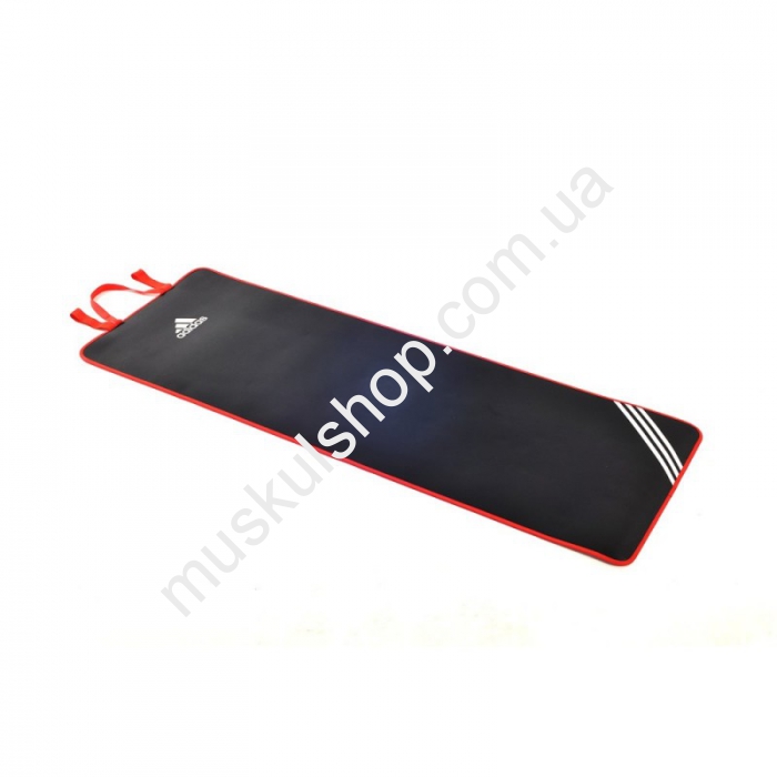 Мат Adidas выполнен из экологически чистого вспененного материала – EVA, представлен в черном цвете, на который нанесен фирменный логотип бренда. Коврик очень легкий, его вес не превышает 1 кг, а благодаря ручке и ремню, его легко можно транспортировать. Толщина мата позволяет достичь хорошей устойчивости при занятиях йогой, аэробикой и пилатес, а также позволяет блокировать проникновение холода, разной влаги с пола или земли, а также удобно ступать на колени. Длина мата позволяет полностью разместиться на нем. Коврик легко поддается чистке, применяется в домашних условиях, на природе либо в спортзалах. Мат поможет вернуть физическую форму и укрепить общий тонус организма.