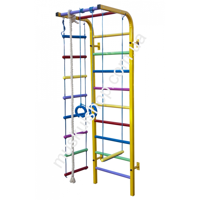 Шведская стенка Sportbaby Старт 3-220 укомплектована кольцами, прочным канатом, трапецией, пиратской лестницей и турником. Комплекс способен выдерживать общую нагрузку в 100 кг, а при этом вес данной стенки составляет всего 20 кг. Шведская стенка способна увеличить выносливость и гибкость тела ребенка, а также развить мышцы, укрепить их, стенка цветного оттенка. Модель выполнена из металла, а перекладины непосредственно из бука. Модель очень простая, надежная и компактная. Комплекс украсит интерьер детской комнаты, придаст ей свежести, могут тренироваться и взрослые и дети, отвлечет от компьютерных игр и просмотра телевизора. Модель привлечет внимание даже очень ленивых детишек, научит их выполнять зарядку, а также поднимет настроение детишкам, скрасит их досуг.