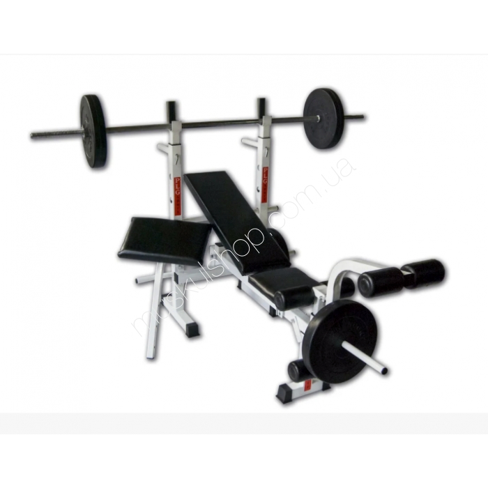 Угол наклона спинки и сидушки регулируется по 4 положения, стойки регулируются по высоте, на самих стойках под гриф имеются резиновые накладки, для амортизации. При откидывании спинки вперед, удобно выполнять упражнения на брусьях. Имеются съемные посадочные места под блины, с которыми будет удобнее брать при смене весов и даже просто удобнее хранить. Также на тренажере есть крепление для приставных тренажеров, с помощью которых можно значительно расширить функциональность тренажера упражнениями на бицепс (приставка Скотта) и упражнениями на сгибание или разгибание ног (приставка сгибание/разгибание ног). Приставные тренажеры поставляются отдельно и их можно приобрести позже в любой момент. Спинка и сидушка имеют очень мощные, качественные и независимые оси, регулируются по углу наклона. Стойки под штангу имеют регулируемую высоту. В комплекте с тренажером идет с инструкцией, по которой тренажер собирается самостоятельно. Оси тренажера выточены из цельной заготовки, а рама изготовлена из металла от 2 до 4 мм. металла, имеет значительные запас прочности, поэтому он подойдет не только для начинающих, но и для спортсменов уже достигших хороших результатов. Спинки тренажера из качественной кожзама, которые прослужат при аккуратном обращении значительно больше гарантийного срока. Полимерная высокотемпературная покраска тренажера устойчивая к повреждениям