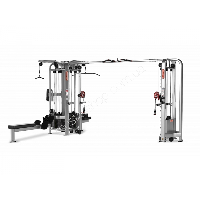 StarTracМультистанция Star Trac Inspiration M9605Мультистанция Star Trac Inspiration M9605 это незаменимый тренажёр в любом спортивном учреждении и даже лично дома. Он собрал в себе сразу несколько различных тренажёров, благодаря чему способен заменить целый комплекс. Конструкция данного аппарата усилена, а потому он способен выдерживать как большие нагрузки, так и интенсивные тренировки даже без необходимости перерывов. Подпятники обеспечивают не только устойчивость аппарата во время выполнения упражнений, но и функцию амортизации, дабы не царапалось напольное покрытие.