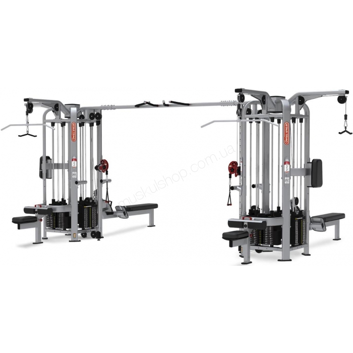 Мультистанция Стар Трек Инспирейшн M9619 включает в себя сразу несколько разнообразных тренажёров, а потому она, фактически, совмещает в себе сразу весь тренажёрный зал силового типа. Благодаря уникальному строению мультистанции все тренажеры могут быть задействованы в то же самое время, не причиняя при этом какого-либо дискомфорта. За счёт специального напыления на конструкции представленная станция способна служить намного дольше, поскольку она защищена от любых негативных воздействий. Не смотря на сложность самой конструкции, ее очень легко использовать, даже если сам аппарат эксплуатируют сразу несколько пользователей.