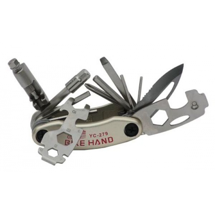 Мультитул BikeHand YC-279 идеален тем, что его можно применить практически для любого типа и серии велосипедов. Основной особенностью инструмента является тот факт, что его могут использовать как опытные мастера, так и новички, или обычные любители кататься, не владеющие навыками ремонта.