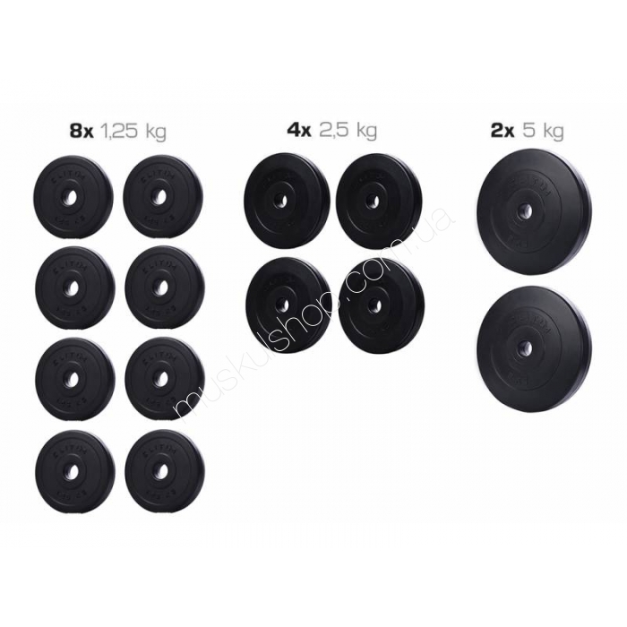 ElitumНабор Elitum из композитных дисков С-30 кгНабор Elitum из композитных дисков С-30 кг имеет достаточно комфортные габариты, которые позволяют с легкостью хранить данный сет даже без стойки. Все диски покрываются специальной защитой, которая не оставляет царапин на покрытии пола и не позволяет негативным факторам оказывать свое воздействие на саму конструкцию дисков. Для того, чтобы вы могли самостоятельно подбирать и регулировать необходимую нагрузку, набор состоит из дисков разного размера и веса. Каждых из дисков оснащается прочным внутренним посадочным местом из качественного металла, что не стирается даже при длительном использовании снаряда. Набор Элитум из композитных дисков С-30 кг прекрасный комплект, который позволит пользователю обустроить и коммерческий, и домашний спортивный зал. Форма каждого диска обеспечивает простоту использования и обеспечивает возможность комфортного хвата при использовании дисков, как отдельных снарядов.