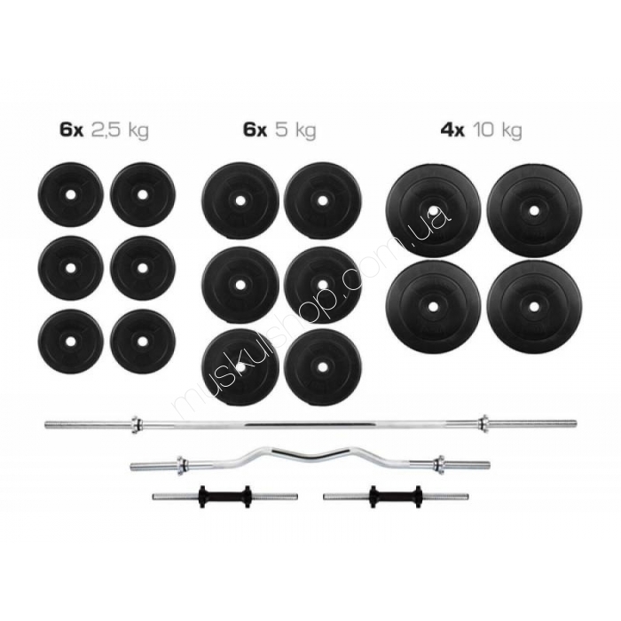 ElitumНабор Elitum Titan 101 кг WНабор Elitum Titan 101 кг W состоит из гантелей и штанги, при том, что каждый из этих компонентов обладает высоким качеством и износостойкостью. Каждый из компонентов набора имеет наборную конструкцию, что делает этот набор пригодным для использования новичками. Такое оборудование поможет вам при развитии мышц верхнего и нижнего пояса тела, в зависимости того, какой тип упражнений вы выполняете. Если вы хотите натренировать мышцы ног, то вам необходимо использовать штангу во время выполнения упражнения на приседания. Набор Элитум Титан штанга и гантели 101 кг В одно из наиболее популярных оборудований, что используется для проведения ежедневного силового тренинга. Для более эффективных тренировок вы можете попеременно использовать штангу и гантели, что поможет вам тренировать мышцы рук одновременно, или попеременно.
