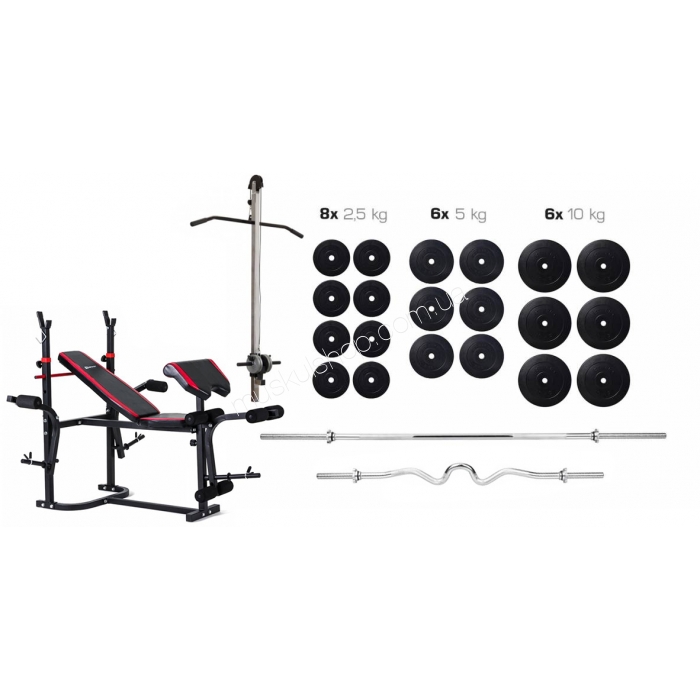 Набор Elitum Titan 124 кг со скамьей HS-1020 + пульт (парта) + тяга Z дополнительно оснащается силовым снарядом для проработки всех мышц, в зависимости от того, какой тип упражнений вы выполняете. Для того, чтобы диски не соскальзывали с посадочных мест на гриф, вы можете закрепить их при помощи особо прочных замков. Универсальность данного оборудования обеспечит возможность выполнять тренировки не только в специализированных центрах, но и в условиях домашнего тренировочного зала. Усиленная металлическая основа обеспечит конструкции возможность выдерживать повышенные нагрузки, когда вы будете работать с большим весом. Набор Элитум Титан 124 кг со скамьей ХС-1020 + пульт (парта) + тяга З является универсальной моделью скамьи, которая позволит вам проводить силовые тренировки. При выполнении разнообразных комплексов упражнений вы сможете развить все основные группы мышц, прорабатывая даже глубочайшие.