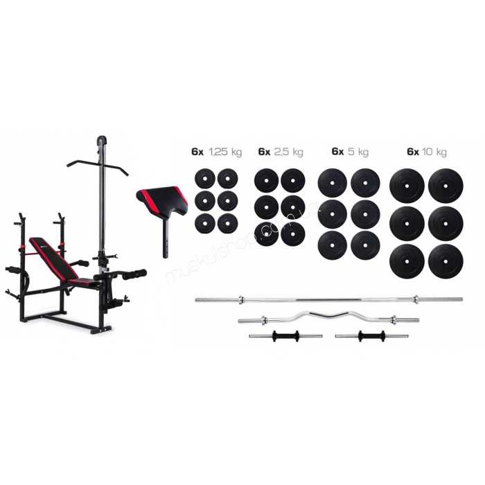 ElitumНабор Elitum Titan 128 кг HS-1070 тяга и парта WНабор Elitum Titan 128 кг со скамьей HS-1070 с тягой и партой W можно назвать идеальным вариантом для того, чтобы выполнять различные комплексы силовых упражнений. Такое оборудование прекрасно подойдет не только для коммерческого использования, но и для домашней эксплуатации. В набор входит силовой снаряд, для того, чтобы ваши тренировки были наиболее полными и результативными. Набор Элитум Титан 128 кг со скамьей ХС-1070 с тягой и партой В оснащается скамьей с мягким сидением и усиленной металлической основой, что создана из профильных труб. Для того, чтобы скамья не подвергалась появлению коррозии, дабы на ней не оставались сколы, она покрыта порошковым напылением при помощи защитной краски. Если вы желаете сформировать нужную нагрузку для своих тренировок, то вам просто надо использовать нужное количество дисков разного веса.