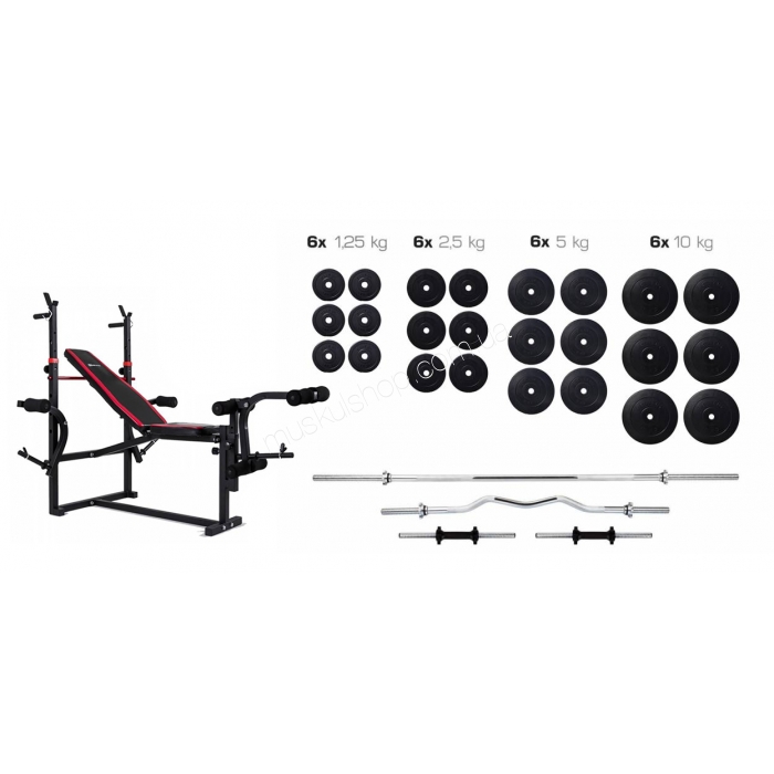 ElitumНабор Elitum Titan 128 кг HS-1070 WНабор Elitum Titan 128 кг со скамьей HS-1070 W весьма надежное оборудование, которое используется для проведения силовых тренировок для наращивания мышечной массы. Данный тип оборудования весьма популярен среди спортсменов, которые занимаются тяжелой атлетикой, кроссфитом, бодибилдингом и другими подобными видами спорта. Поскольку в набор также входит и силовой снаряд, у вас имеется возможность сразу приступить к тренировкам после его приобретения. Набор Элитум Титан 128 кг со скамьей ХС-1070 В оснащается высококачественной моделью скамьи с усиленной рамой из стальных профильных труб, чтобы оборудование могло выдерживать повышенные нагрузки. Устойчивость оборудования обеспечивается благодаря наличию на ножках подпятников, что служат в качестве компенсаторов неровности пола. Небольшие габариты обеспечивают простоту установки всего набора в любом помещении, даже у вас дома.