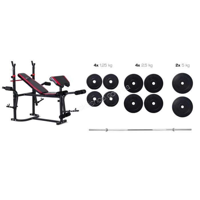 Набор Elitum Titan 33 кг со скамьей HS-1020 + пульт (парта) универсальный набор, в который входит силовой снаряд для возможности проведения высококачественных тренировок. Данное оборудование может применяться не только в профессиональных центрах, но и в домашних условиях для проведения индивидуальных тренировок. Скамья представленного набора имеет усиленную металлическую основу, которая позволяет выдерживать повышенные нагрузки и работать с большим весом. Набор Элитум Титан 33 кг со скамьей ХС-1020 + пульт (парта) оснащается комфортной стойкой, которая обеспечивает статичное положение штанги на специальных держателях, когда вы не используете ту. Для того, чтобы скамья оставалась в устойчивом положении и не царапала покрытия пола, у неё на ножках имеются подпятники. Конструкция и назначение представленной скамьи, а также наличие дополнительного снаряда позволит прорабатывать все основные группы мышц.