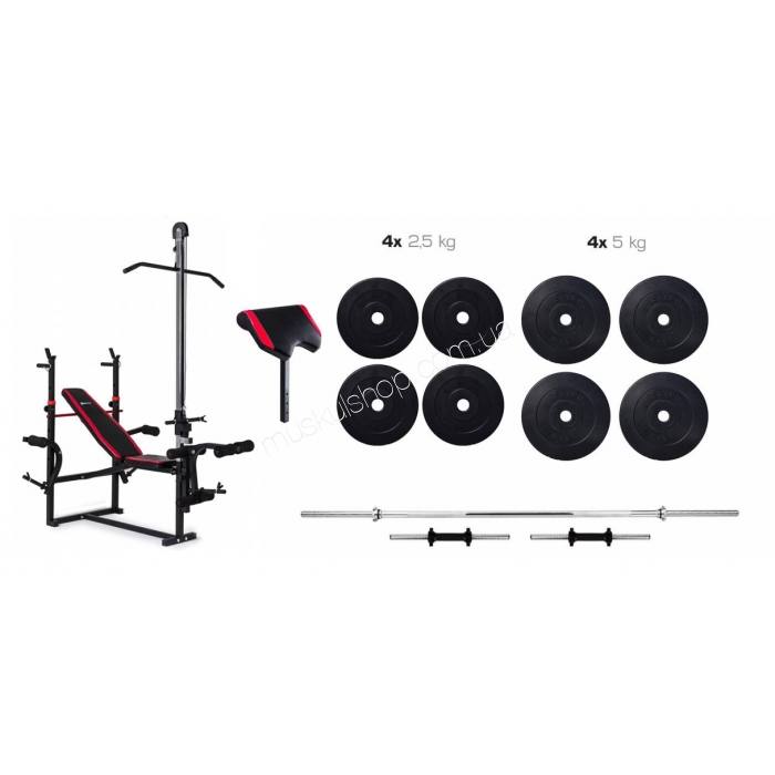 ElitumНабор Elitum Titan 40 кг HS-1070 тяга и партаНабор Elitum Titan 40 кг со скамьей HS-1070 с тягой и партой не просто популярное силовое оборудование, но и возможность проводить множество различных комплексов упражнений на развитие мышц. Конструкция скамьи позволяет вам применять её для различного комплекса упражнений, как с использованием стойки, так и отдельно. Помимо упражнений на жим, вы также можете проводить и приседания, что даст вас возможность развития мышц ног. Набор Элитум Титан 40 кг со скамьей ХС-1070 с тягой и партой оснащается не только скамьей, но и силовым снарядом, дабы вы могли сразу после приобретения комплекта перейти к тренировкам. При изменении количества дисков на снаряде вы сможете самостоятельно подбирать нужную нагрузку для ваших тренировок. Для того, чтобы сделать ваши тренировки максимально комфортными, скамья была оснащена мягким наполнителем и обивкой из искусственной кожи.
