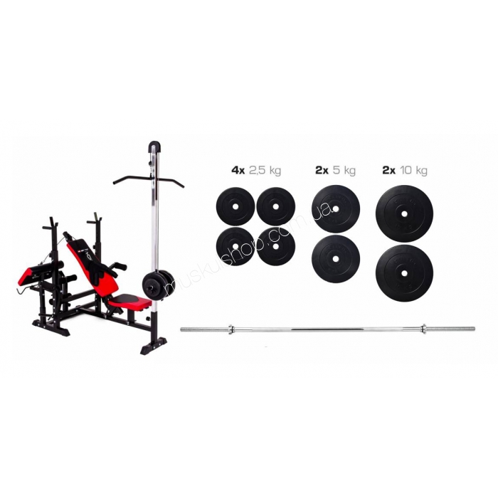 Набор Elitum Titan 48 кг со скамьей HS-1075 с тягой и партой является универсальной моделью скамьи, которая позволит вам проводить силовые тренировки. Универсальность данного оборудования обеспечит возможность выполнять тренировки не только в специализированных центрах, но и в условиях домашнего тренировочного зала. При выполнении разнообразных комплексов упражнений вы сможете развить все основные группы мышц, прорабатывая даже глубочайшие. Набор Элитум Титан 48 кг со скамьей ХС-1075 с тягой и партой дополнительно оснащается силовым снарядом для проработки всех мышц, в зависимости от того, какой тип упражнений вы выполняете. Усиленная металлическая основа обеспечит конструкции возможность выдерживать повышенные нагрузки, когда вы будете работать с большим весом. Для того, чтобы диски не соскальзывали с посадочных мест на гриф, вы можете закрепить их при помощи особо прочных замков.