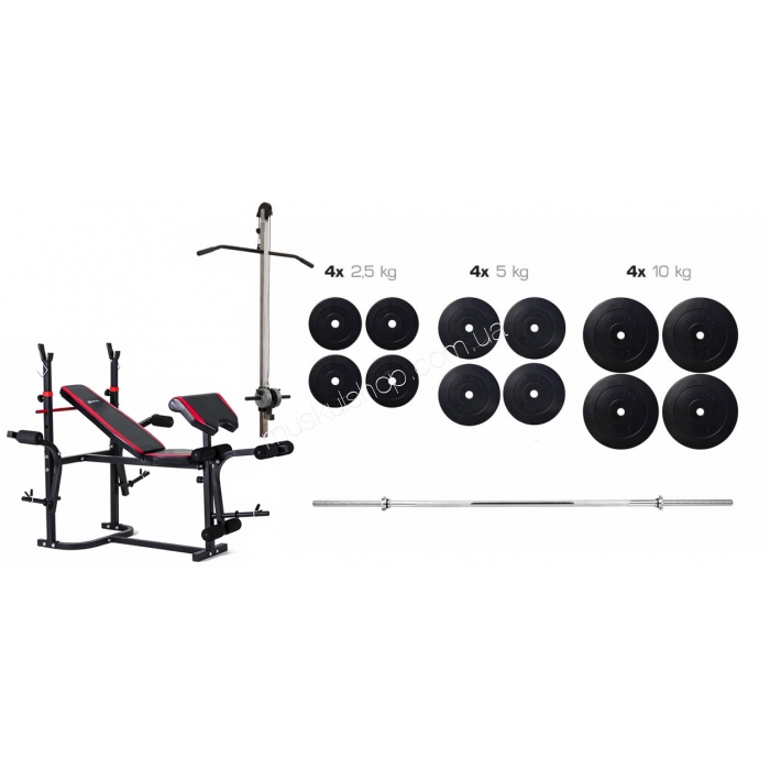 ElitumНабор Elitum Titan 78 кг HS-1020 пульт и тягаНабор Elitum Titan 78 кг со скамьей HS-1020 + пульт (парта) + тяга не поддается воздействию коррозии благодаря порошковому покрытию в виде краски, которая также препятствует появлению царапин и сколов. Для того, чтобы вы могли хранить штангу, а также дабы обеспечить вашу безопасность во время тренировок, имеется специальная стойка. Вы можете использовать такой набор как у себя дома для личных тренировок, так и в специализированных центрах для коммерческих целей. Улучшенная конструкция, что создана на основе профильных труб, позволит спортсмену работать с большими нагрузками. Набор Элитум Титан 78 кг со скамьей ХС-1020 + пульт (парта) + тяга достаточно компактная скамья, которую можно с легкостью разместить даже в помещении с малой площадью, дабы она не мешала установке другого оборудования. Устойчивость скамьи гарантируется за счет наличия небольших резиновых подпятников на ножках, которые не позволяют ей скользить на любом покрытии.