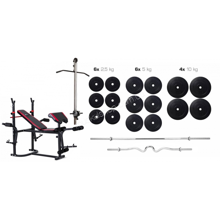Набор Elitum Titan 99 кг со скамьей HS-1020 + пульт (парта) + тяга Z оснащается скамьей с мягким сидением и усиленной металлической основой, что создана из профильных труб. Если вы желаете сформировать нужную нагрузку для своих тренировок, то вам просто надо использовать нужное количество дисков разного веса. Такое оборудование прекрасно подойдет не только для коммерческого использования, но и для домашней эксплуатации. Для того, чтобы скамья не подвергалась появлению коррозии, дабы на ней не оставались сколы, она покрыта порошковым напылением при помощи защитной краски. Набор Элитум Титан 99 кг со скамьей ХС-1020 + пульт (парта) + тяга З можно назвать идеальным вариантом для того, чтобы выполнять различные комплексы силовых упражнений. В набор входит силовой снаряд, для того, чтобы ваши тренировки были наиболее полными и результативными.