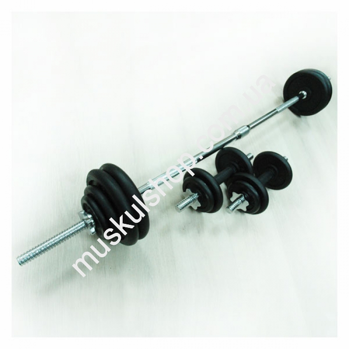 FitLogic BDB 50 – это набор для домашнего использования: штанга, две гантели и набор весовых дисков.