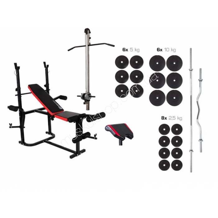 Набор Hop-Sport Premium 124 кг со скамьей HS-1020 + пульт (парта) + тяга W оснащается высококачественной улучшенной моделью силового снаряда, дабы вы смогли развивать силу и мышечную массу. Благодаря стальному грифу вы сможете заниматься даже с повышенными нагрузками, не боясь, что тот подвергнется деформации. Дабы вы смогли самостоятельно регулировать вес снаряда, а также дабы диски не соскальзывали с посадочного места, имеются специальные замки. Набор Хоп-Спорт Премиум 124 кг со скамьей ХС-1020 + пульт (парта) + тяга В обладает скамьей с высококачественной стальной основы для того, чтобы оборудование могло выдерживать большие нагрузки при работе со штангой и другими снарядами. Мягкое сидение покрыто безопасной искусственной кожей, которая не навредит здоровью пользователя даже при прямом контакте с кожей. Для того, чтобы вы могли хранить штангу, скамья также оснащается и стойкой с надежными держателями.