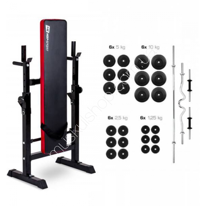 Hop-SportНабор Hop-Sport Premium 128 кг HS-1080 ZНабор Hop-Sport Premium 128 кг со скамьей HS-1080 Z является удобным и функциональным снаряжением, которое определенно понравится пользователям, что предпочитают работать с большим весом. Наличие стойки с держателями под штангу обеспечит простоту её хранения в одном месте, когда вы не проводите свои тренировки. При приобретении представленного оборудования у вас не будет необходимости посещать специализированные спортивные центры. Для того, чтобы каждая ваша тренировка была наиболее эффективной, данный набор также поставляется и с дополнительным силовым снарядом. Набор Хоп-Спорт Премиум 128 кг со скамьей ХС-1080 З это целый комплект, который может заменить вам небольшой тренировочный зал в домашних условиях. Универсальное предназначение позволяет заниматься на такой скамье пользователям любого уровня подготовки и направленности.