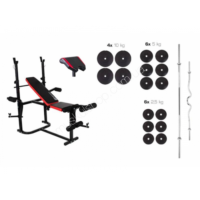 Hop-SportНабор Hop-Sport Premium 99 кг HS-1020 и пульт ZНабор Hop-Sport Premium 99 кг со скамьей HS-1020 + пульт (парта) Z станет прекрасным вариантом для того, чтобы вы могли обустроить свой домашний тренировочный зал. В данном наборе имеется не только скамья со стойкой, но и дополнительный силовой снаряд, который позволит вам сразу же приступить к тренировочному процессу. При необходимости, данный набор можно использовать также и для коммерческих целей, если разместить его в профессиональном центре. Набор Хоп-Спорт Премиум 99 кг со скамьей ХС-1020 + пульт (парта) З позволит вам проводить упражнения на жим, приседания и другие разнообразные упражнения при работе со свободным весом. Удобная конструкция скамьи обладает мягким сидением со вспененным наполнителем и высококачественным покрытием из эко кожи. Дабы обеспечить основе конструкции надежную защиту, она была покрыта порошковой краской в виде напыления.