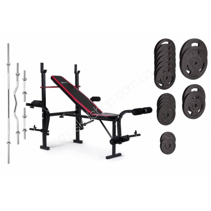Hop-SportНабор Hop-Sport Strong 129 кг HS-1055 WНабор Hop-Sport Strong 129 кг со скамьей HS-1055 W оснащается удобным сидением скамьи, что позволяет вам проводить длительные тренировки по несколько подходов. Конструкция и назначение скамьи, а также её дополнения обеспечат вам возможность развивать все группы мышц, как основные, так и глубочайшие. Скамья, что входит в набор, идеально подойдет любому пользователю, все зависимости от физиологических особенностей и навыков. Плотная и удобная обивка скамьи отличается своей прочностью, а потому она не будет протираться даже при продолжительных тренировках. Набор Хоп-Спорт Стронг 129 кг со скамьей ХС-1055 В оснащается не только силовым снарядом, но и стойкой под штангу со специальными держателями, которые обеспечивают комфортное хранение снаряда. Стойку можно использовать не только в качестве подставки для штанги, но и как дополнительную страховку, что обеспечивает безопасность пользователя.