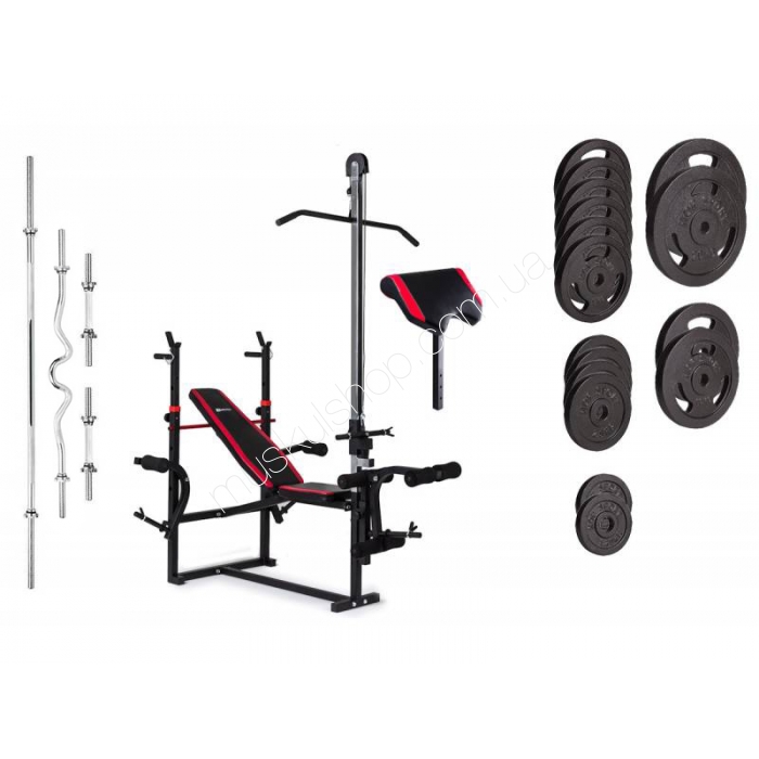 Hop-SportНабор Hop-Sport Strong 129кг HS-1070 тяга, парта ZНабор Hop-Sport Strong 129 кг со скамьей HS-1070 с тягой и партой Z оснащается не только силовым снарядом, но и стойкой под штангу со специальными держателями, которые обеспечивают комфортное хранение снаряда. Скамья, что входит в набор, идеально подойдет любому пользователю, все зависимости от физиологических особенностей и навыков. Стойку можно использовать не только в качестве подставки для штанги, но и как дополнительную страховку, что обеспечивает безопасность пользователя. Набор Хоп-Спорт Стронг 129 кг со скамьей ХС-1070 с тягой и партой З оснащается удобным сидением скамьи, что позволяет вам проводить длительные тренировки по несколько подходов. Плотная и удобная обивка скамьи отличается своей прочностью, а потому она не будет протираться даже при продолжительных тренировках. Конструкция и назначение скамьи, а также её дополнения обеспечат вам возможность развивать все группы мышц, как основные, так и глубочайшие.
