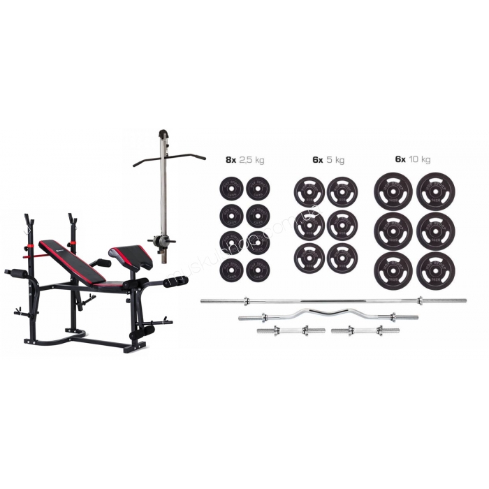 Hop-SportНабор Hop-Sport Strong 133 кг HS-1020 и тяга WНабор Hop-Sport Strong 133 кг со скамьей HS-1020 + тяга W обладает мягким сидением со вспененным наполнителем и покрытием из синтетической кожи, что полностью безопасна для здоровья человека. Наличие стойки для штанги обеспечит её сохранность, а также поспособствует вашей безопасности во время выполнения упражнений. Дабы основа скамьи не подвергалась коррозии и механическому воздействию, от которого могут появиться царапины, она покрыта защитной порошковой краской. Поскольку на ножках скамьи имеются резиновые подпятники, она при любых условиях будет оставаться в устойчивом положении, не скользя на напольном покрытии. Набор Хоп-Спорт Стронг 133 кг со скамьей ХС-1020 + тяга В обладает стальным каркасом, что выполнен из высококачественного стального профиля, способного выдерживать большие нагрузки. Для того, чтобы улучшить ваши тренировки и сделать их наиболее результативными, в набор входит силовой снаряд с наборной конструкцией.