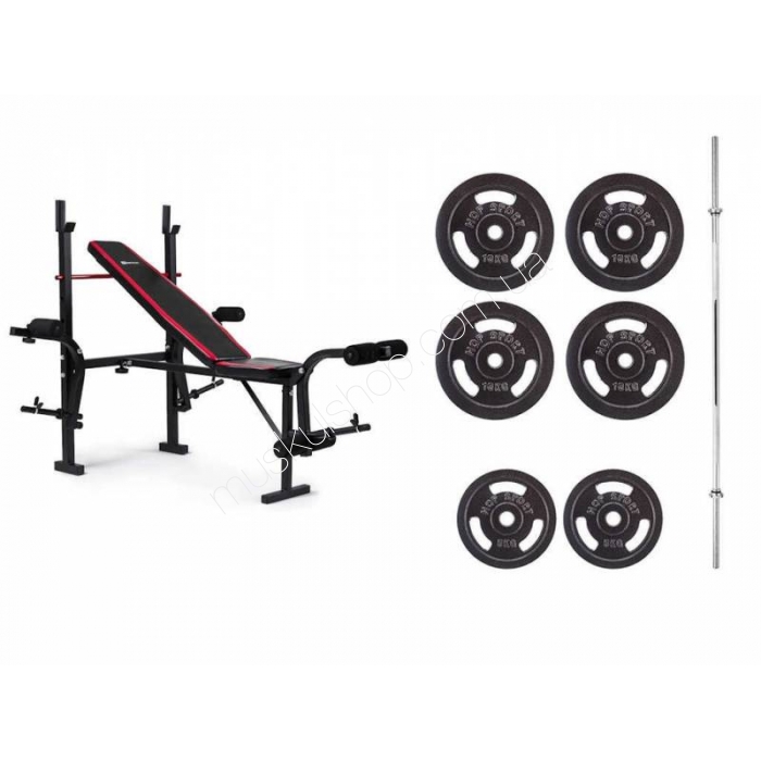 Набор Hop-Sport Strong 60 кг со скамьей HS-1055 оснащается высококачественной моделью скамьи с усиленной рамой из стальных профильных труб, чтобы оборудование могло выдерживать повышенные нагрузки. Небольшие габариты обеспечивают простоту установки всего набора в любом помещении, даже у вас дома. Данный тип оборудования весьма популярен среди спортсменов, которые занимаются тяжелой атлетикой, кроссфитом, бодибилдингом и другими подобными видами спорта. Устойчивость оборудования обеспечивается благодаря наличию на ножках подпятников, что служат в качестве компенсаторов неровности пола. Набор Хоп-Спорт Стронг 60 кг со скамьей ХС-1055 весьма надежное оборудование, которое используется для проведения силовых тренировок для наращивания мышечной массы. Поскольку в набор также входит и силовой снаряд, у вас имеется возможность сразу приступить к тренировкам после его приобретения.