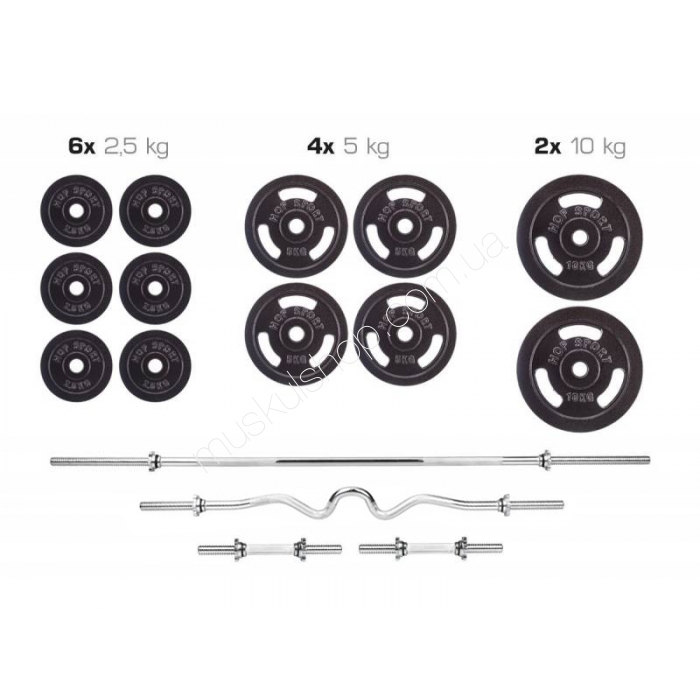 Hop-SportНабор Hop-Sport Strong 78 кг ZНабор Hop-Sport Strong 78 кг Z состоит из гантелей и штанги, при том, что каждый из этих компонентов обладает высоким качеством и износостойкостью. Каждый из компонентов набора имеет наборную конструкцию, что делает этот набор пригодным для использования новичками. Такое оборудование поможет вам при развитии мышц верхнего и нижнего пояса тела, в зависимости того, какой тип упражнений вы выполняете. Если вы хотите натренировать мышцы ног, то вам необходимо использовать штангу во время выполнения упражнения на приседания. Набор Хоп-Спорт Стронг штанга и гантели 78 кг З одно из наиболее популярных оборудований, что используется для проведения ежедневного силового тренинга. Для более эффективных тренировок вы можете попеременно использовать штангу и гантели, что поможет вам тренировать мышцы рук одновременно, или попеременно.