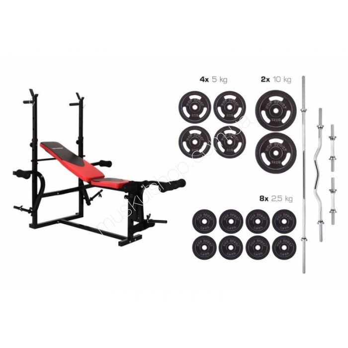 Hop-SportНабор Hop-Sport Strong 83 кг HS-1070 WНабор Hop-Sport Strong 83 кг со скамьей HS-1070 W оснащается силовым снарядом, который поспособствует наиболее результативному тренировочному процессу. Наличие стоек позволит вам комфортно хранить штангу тогда, когда вы ей не пользуетесь, просто поместив ту на специальные держатели. В зависимости от комплекса выполняемых упражнений, вы можете проводить тренировки на жим и приседания, или другие подобные. Покрытие мягкой части скамьи в виде искусственной кожи способствует повышенной износостойкости, поскольку такая обивка не впитывает влаги и не деформируется. Набор Хоп-Спорт Стронг 83 кг со скамьей ХС-1070 В одно из наиболее популярных оборудований для проведения результативных тренировок на развитие мышечной массы. Мягкие части данной модели скамьи позволяют сделать ваши тренировки наиболее комфортными благодаря вспененному наполнителю.