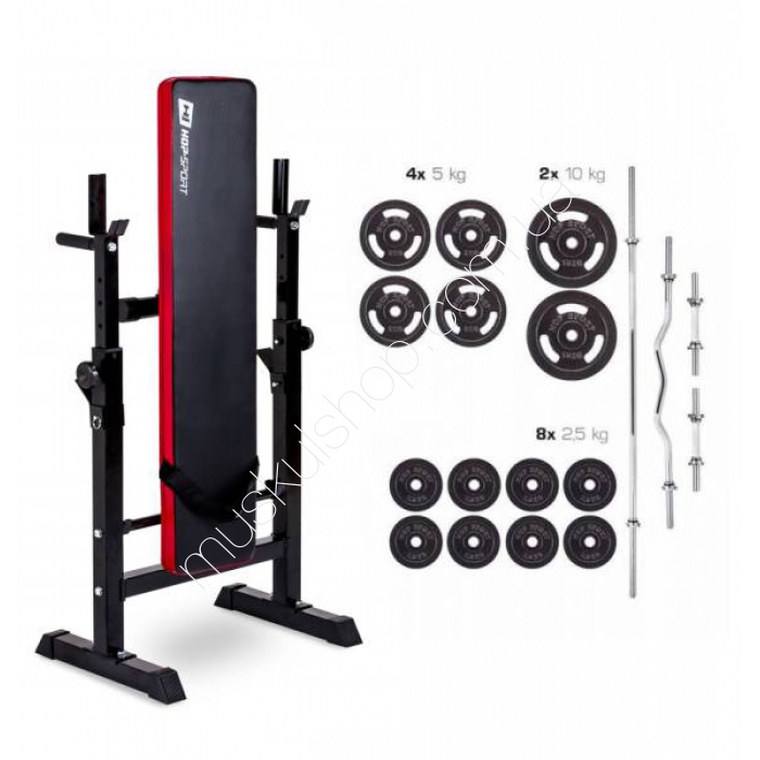 Hop-SportНабор Hop-Sport Strong 83 кг HS-1080 WНабор Hop-Sport Strong 83 кг со скамьей HS-1080 W можно назвать универсальным снарядом, который идеально подойдет для проведения тренировок силового типа. За счет того, что в данный набор входит дополнительно силовой снаряд, вы сможете проводить тренировки различной сложности. Наборная конструкция снаряда позволит вам самостоятельно создавать необходимую нагрузку, исходя из ваших физических способностей. Набор Хоп-Спорт Стронг 83 кг со скамьей ХС-1080 В обладает мягкими частями со вспененным наполнителем, который способен быстро принять форму тела человека, обеспечив максимальный комфорт. Для того, чтобы диски не соскальзывали с посадочных мест грифа, снаряд оснащается высококачественными замками. Дабы скамья подвергалась воздействию коррозии, она была покрыта специальной защитной краской в виде напыления.