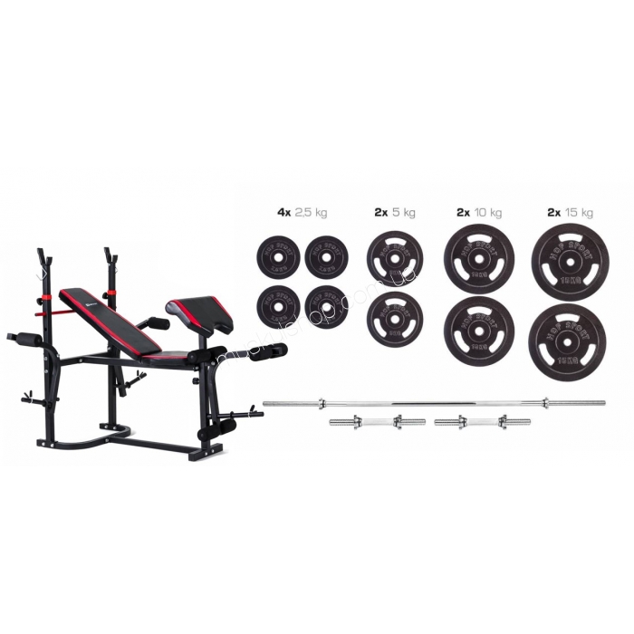 Hop-SportНабор Hop-Sport Strong 85 кг HS-1020Набор Hop-Sport Strong 85 кг со скамьей HS-1020 не поддается воздействию коррозии благодаря порошковому покрытию в виде краски, которая также препятствует появлению царапин и сколов. Для того, чтобы вы могли хранить штангу, а также дабы обеспечить вашу безопасность во время тренировок, имеется специальная стойка. Вы можете использовать такой набор как у себя дома для личных тренировок, так и в специализированных центрах для коммерческих целей. Улучшенная конструкция, что создана на основе профильных труб, позволит спортсмену работать с большими нагрузками. Набор Хоп-Спорт Стронг 85 кг со скамьей ХС-1020 достаточно компактная скамья, которую можно с легкостью разместить даже в помещении с малой площадью, дабы она не мешала установке другого оборудования. Устойчивость скамьи гарантируется за счет наличия небольших резиновых подпятников на ножках, которые не позволяют ей скользить на любом покрытии.