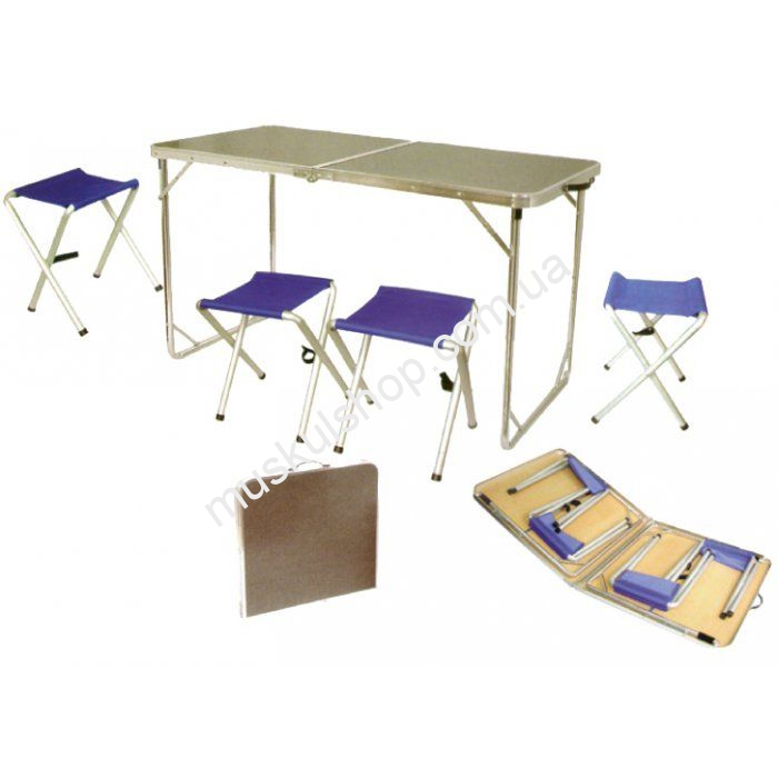 Мебель Tramp туристического назначения лучшее дополнение для отдыха большой компанией. Комплектуется мебель четырьмя табуретками, а также складным столиком. Стол большого размера, подойдет для громких, туристических празднований у костра реки. Крепления увеличивают прочность конструкции, которая выполнена с прочного алюминиевого сплава. Для удобства транспортировки предусмотрен чемоданчик, а также большой и прочный чехол. Модель представлена в синем цвете. Вес набора не превышает 7 кг, который может поднять любой подросток в семье. Допустимая нагрузка на стол составляет до 20 кг, а на стульчик до 80 кг. Материал стульев сверху прочный нейлон и полиэтилен, которые не промокают.