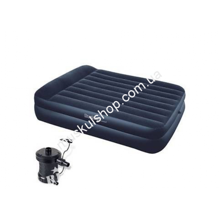 BestWayНадувная кровать Bestway 67345Двуспальная надувная кровать со встроенным электрическим насосом Bestway 67345 это универсальное приспособление, которое используется в качестве спального места. Оно является прекрасной альтернативой обычной кровати, особенно, если учесть, что его можно легко транспортировать. Данное изделие отлично подойдёт для применения не только в домашних условиях, но даже на отдыхе, к примеру, на даче, или даже в сельской местности. За счёт складной конструкции нет необходимости думать на счёт дополнительного места при транспортировке.