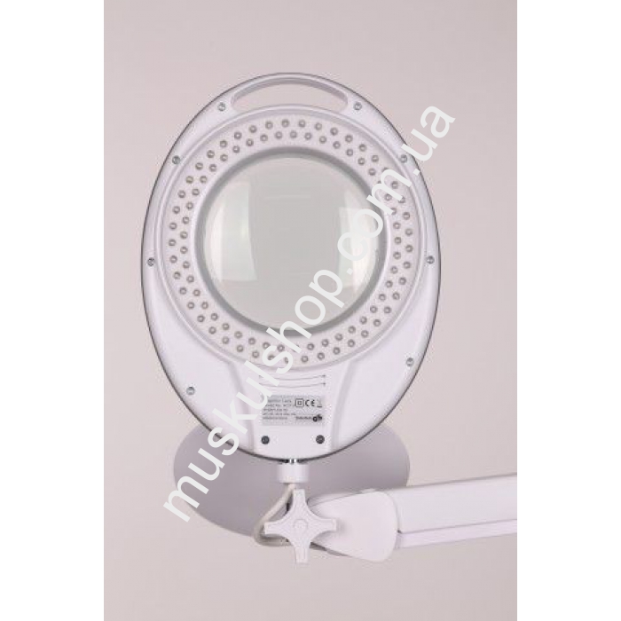 Настольная лампа-лупа Asf Данная модель жизненно важна при проведении диагностики и выбора способа эффективного лечения определенного заболевания. Предусмотрено 90 шт. светодиодных лампочек. Аппарат способен осмотреть поры кожи клиента салона, небольшие за размером морщины, а также микротрещины кожи. Лампа-лупа поможет получить необходимый степень увеличения, а также необходимый уровень освещения для проведения определенного вида косметологических процедур, потребляемая мощность всего 9 Вт. На верху лампы размещена ручка, для удобства вращения и транспортировки, а также крышка для защиты линзы от царапин и пыли. Линза изготовлена из стекла, ее диаметр составляет 12,5 см, способна увеличить до 5 диоптрии, представлена в белом цвете, впишется в любой интерьер косметологического кабинета.