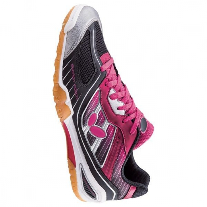 Обувь Butterfly теннисная, спортивная, придется по душе слабой половине общества, в такой обуви можно активно прыгать, бегать и скакать вокруг теннисного стола, вообще забыв об усталости ног. Обувь устойчивая, качественная, выполнена с натуральной и эластичной кожи, чтобы ноги спортсмена не потели и не скользили внутри. Комплектуется модель ортопедической, прочной стелькой с эффектом амортизации, на кроссовки нанесен фирменный логотип бренда, часто можно встретить на различных турнирах и соревнованиях. Кроссовки были изготовлены благодаря современным инновациям, были задействованы высокотехнологическая резина и интегрированный гель, все это приводит к небывалому взрыву и толчку в момент ответственного матча. Модель комплектуется прочными шнурками, отличной подошвой, очень легкие и комфортные, представлена в розовом цвете.