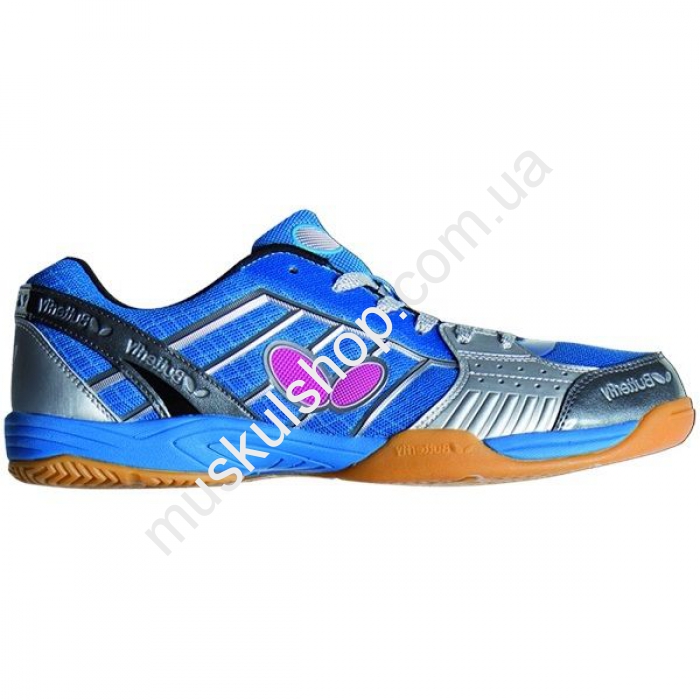 Обувь Butterfly теннисная, фирменного синего цвета, обвораживает своим внутренним видом, дизайном и качеством. Кроссовки в момент игры, словно, пружинит, амортизирует, облегчая передвижение перед столом, помогая выиграть турнирный поединок. Обувь комплектуется прочными шнурками, очень легкая и комфортная, она состоит с литой подошвы, ортопедического уклона, а также сеточкой для лучшего воздухообмена. Модель пошита с натуральной и эластичной кожи, резины и интегрированного геля, все составляющие сохраняют ноги спортсмена сухими, а ступни не скользят. Обувь создана для активных спортсменов, которые не бояться больших нагрузок, скоростей и темпа, в такой обуви можно активно прыгать, бегать и скакать вокруг теннисного стола, вообще забыв об усталости ног.