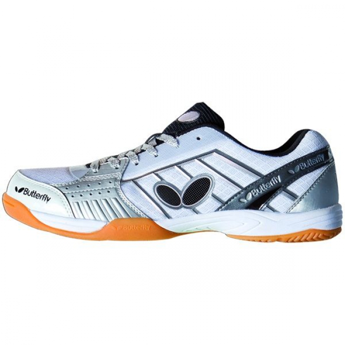 Обувь Butterfly теннисная, состоит с литой подошвы, ортопедического уклона и широких комфортных шнурков, а также сеточкой для лучшего воздухообмена. Модель представлена в белом цвете, на которую нанесен логотип фирменного бренда. Обувь комплектуется прочными шнурками, отличной подошвой, очень легкие и комфортные. Кроссовки в момент игры, словно, пружинит, амортизирует, облегчая передвижение перед столом, помогая выиграть турнирный поединок. Модель создана для активных спортсменов, которые не бояться больших нагрузок, скоростей и темпа, в такой обуви можно активно прыгать, бегать и скакать вокруг теннисного стола, вообще забыв об усталости ног. Модель пошита с натуральной и эластичной кожи, резины и интегрированного геля, все составляющие сохраняют ноги спортсмена сухими, а ступни не скользят.