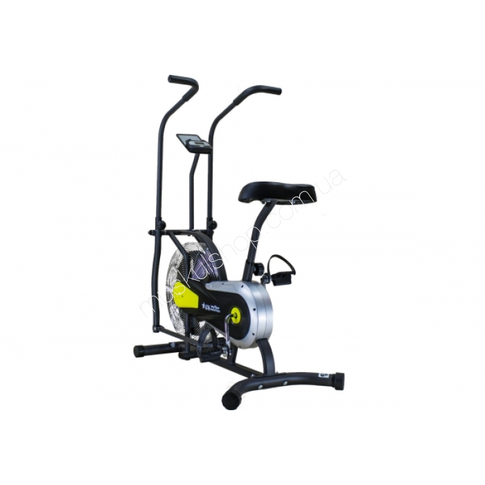 Данная модель велотренажера разработана специально для домашнего использования, обеспечивая владельца широким списком практичных особенностей, например, здесь предусмотрено комфортабельное посадочное место больших размеров, позволяющее снять лишнюю нагрузку с позвоночника, удобные регулируемые по высоте рычаги-рукоятки, при помощи которых эффективно прорабатываются зоны плеч и рук, а также незаменимые компенсаторы неровной поверхности и информативный интуитивно понятный монохромный дисплей, отображающий параметры скорости, дистанции, расходуемых калорий и времени тренировочного занятия. Общие размеры велотренажера Air bike USA Style XXX502 в упаковке - 66,5х25х100 см.