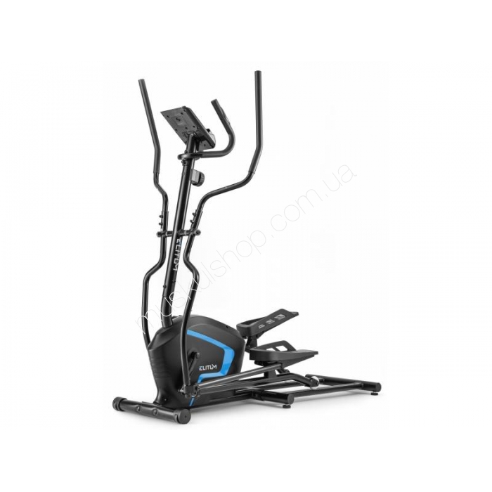 Орбитрек Elitum MX500 Black с магнитной системой нагрузки. Вес системы махового колеса: 12 кг. Максимальный вес пользователя: 120 кг. 8 уровней регуляции нагрузки. Показания компьютера: время тренировки, пройденная дистанция, калории, скорость, пульс. Датчики пульса на рукоятках. Транспортные ролики для удобного перемещения.