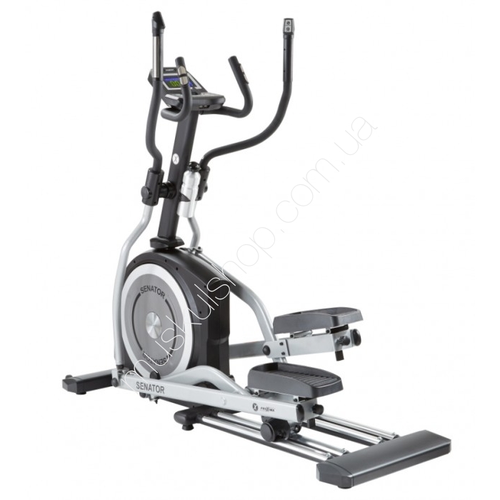Переднеприводной эллиптический тренажер с генератором Proxima Senator iPro FE-659 предназначен для использования дома и в спортклубах с умеренной нагрузкой (до 3 часов в день). Отличается повышенным комфортом и удобством для пользователей. Он устойчивый: оснащен сдвоенными колесами на металлических направляющих и фронтальными стабилизаторами. Минимальный Q-фактор 8 см в сочетании с длиной шага 58 см и высотой шага 23 см позволяет почувствовать естественные беговые движения, а дополнительные мягкие педали дарят ощущения мягкости бега. Функция изменения угла наклона педалей ANKLE SUPPORT™ фиксирует стопу пользователя в индивидуально комфортном положении и позволяет прорабатывать разные группы мышц за счет перераспределения нагрузки.