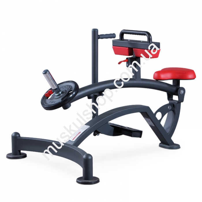Тренажер нагружается стандартными весовыми дисками от штанги – необходимый вес нагружается спортсменом индивидуально и может варьироваться в очень широких пределах.