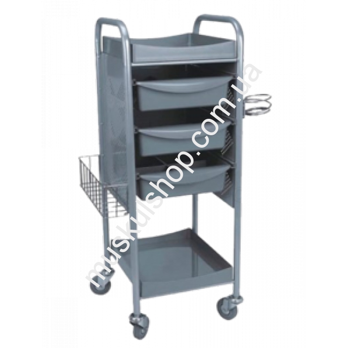 Тележка Asf передвигается на колесиках, комплектуется держателем для расчесок. Безупречный вариант для парикмахеров и косметологов, прочная, высокая, мобильная, лучшей модели не найти, общий вес модели составляет порядка 9 кг, а высота почти 92 см, представлена в черном цвете. Тележка хорошо поддается чистке различными дезинфицирующими средствами, не царапается основание и ящички, просто незаменимый помощник для абсолютно любого специалиста. Тележку применяют для транспортировки и сохранности разнообразных приборов, аппаратуры и всевозможных аксессуаров. Модель укомплектована четырьмя выдвижными ящиками, держателем для фена, держателем для бутылочки.